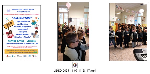 Per la GIORNATA INTERNAZIONALE DEI DIRITTI PER L'INFANZIA E L'ADOLESCENZA, più di 300 bambini delle scuole di Vercelli, presenteranno il 19 novembre nel teatro Civico cittadino, lo spettacolo: