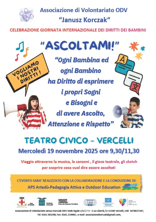 "ASCOLTAMI!" "Ogni Bambina e ogni Bambino ha Diritto di esprimere i propri sogni e bisogni e di avere ascolto, attenzione e rispetto".